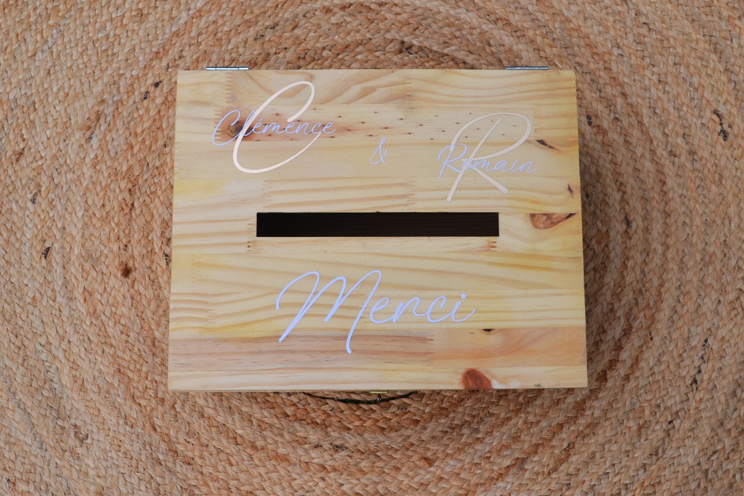 Chez L’atelier Marcel, nous offrons une variété d’options de personnalisation sur beaucoup de produits. Urne, plan de table, menu, panneau de bienvenue… Je serais là pour vous guider afin de créer une ambiance qui vous ressemble ! Chaque création sur mesure sera étudiée avec soin et chiffrée sur devis, afin de s’adapter parfaitement à votre projet.