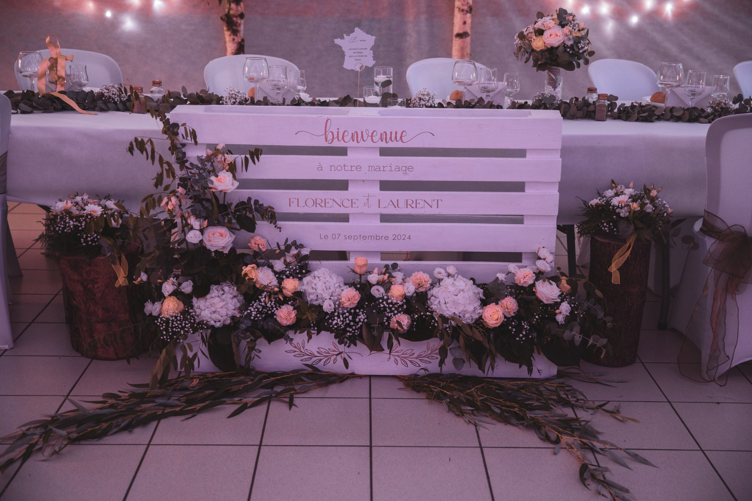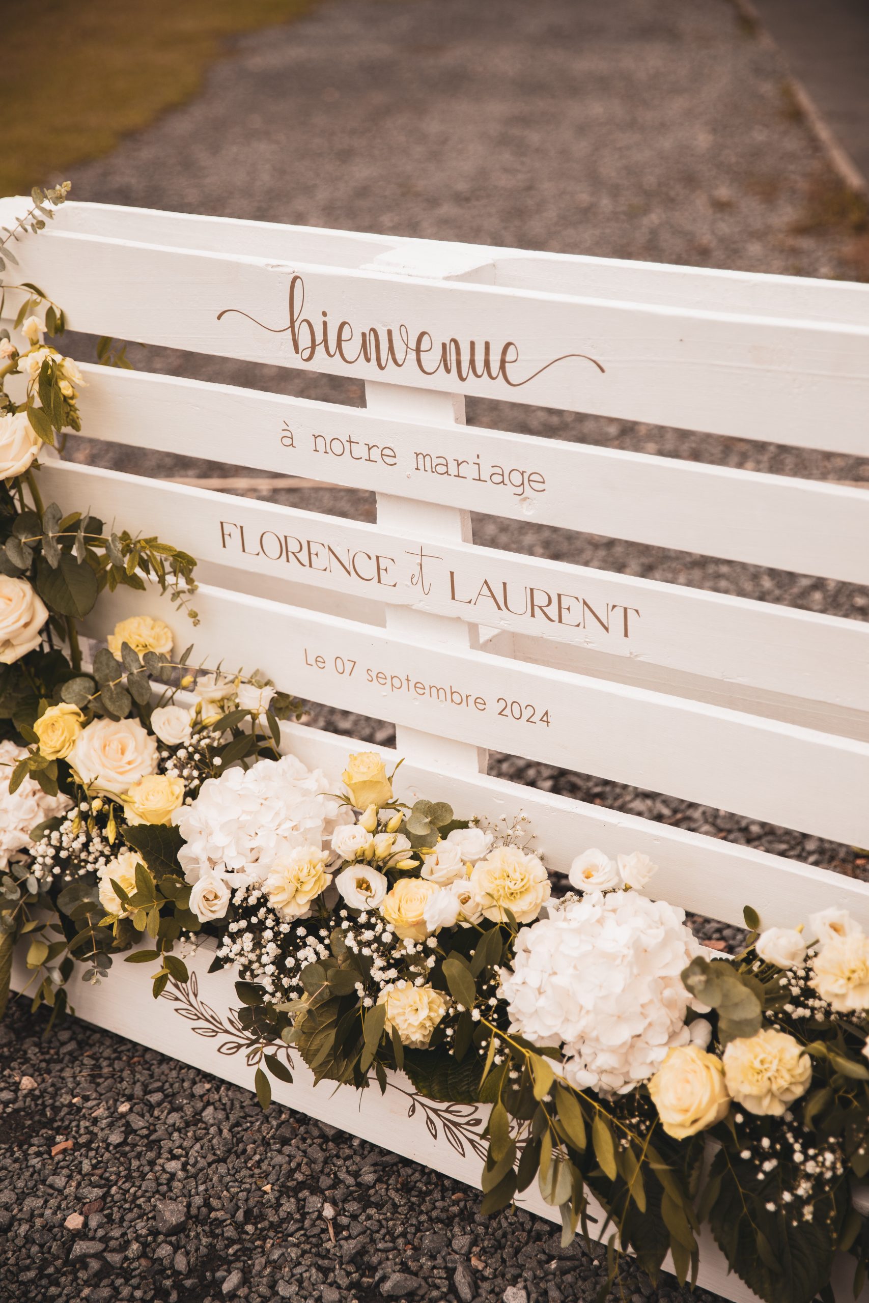 Ce panneau de bienvenue en palette, au style champêtre et authentique, sera l’élément idéal pour accueillir vos invités avec douceur et élégance. Réalisé à partir de bois peint, il apportera une touche naturelle, chaleureuse et conviviale dès l’entrée de votre événement.